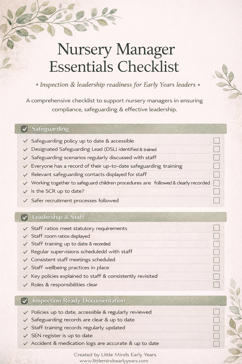 Practical resources to support supervision, planning, and day-to-day leadership in early years settings.